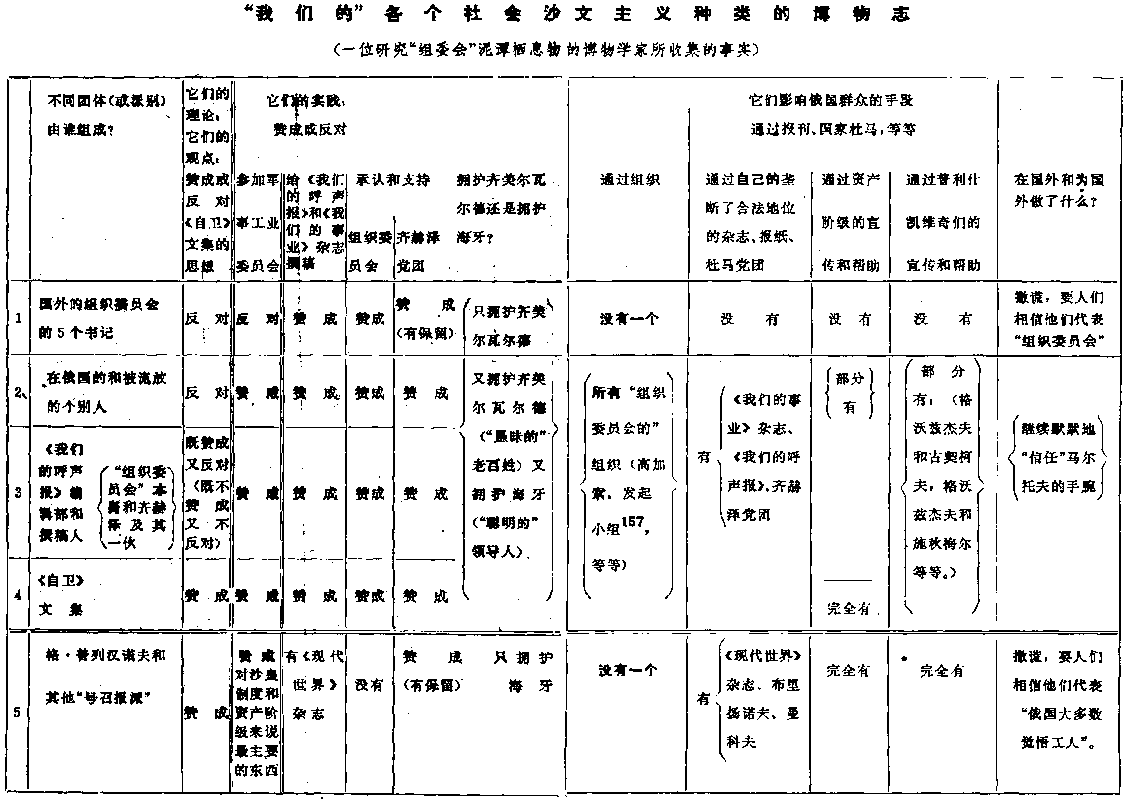 为了拿事实同马尔托夫的“政治”手腕作一个对照,我们让一位研究各种爬行动物等等的博物学家154来发言。在《我们的呼声报》第27号上刊登了由(第1类)5名国外书记和(第2类)大家知道的主张参加军事工业委员会的叶若夫、策列铁里、唐恩等人签名的对《自卫》文集的抗议书。155《我们的呼声报》编辑部(第3类)采取了“中间”立场:既赞成又反对《自卫》文集,既赞成又反对“抗议书”。