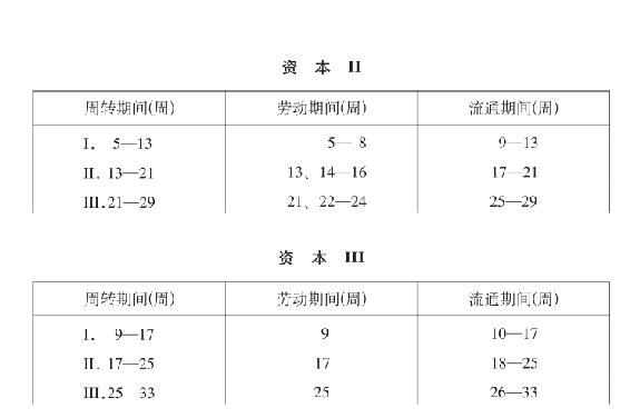 我们现在应该研究,在周转期间的两部分即劳动期间和流通期间相等时,或者,在劳动期间大于或小于流通期间时,在周转上会产生什么样的差别;其次,应该研究,这对资本束缚在货币资本形式上会发生什么影响。