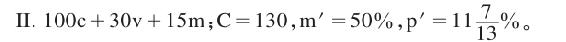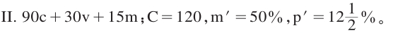 II. 100c+20v+20m;C=120,m′=100%,p′=