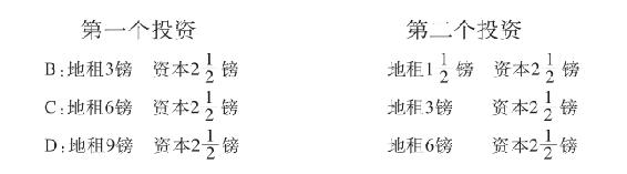 镑资本之比。在这里,在所投资本之间没有出现任何新的差额,但是产生了新的超额利润,这只是因为追加资本投在任何一级提供地租的土地上,或投在各级提供地租的土地上,会按同样的比例提供产量。例如,如果加倍的投资只投在C上面,那么,C、B、D之间的按资本计算的级差地租仍旧不变;因为得自土地C的地租额增加一倍时,所投资本也增加一倍。